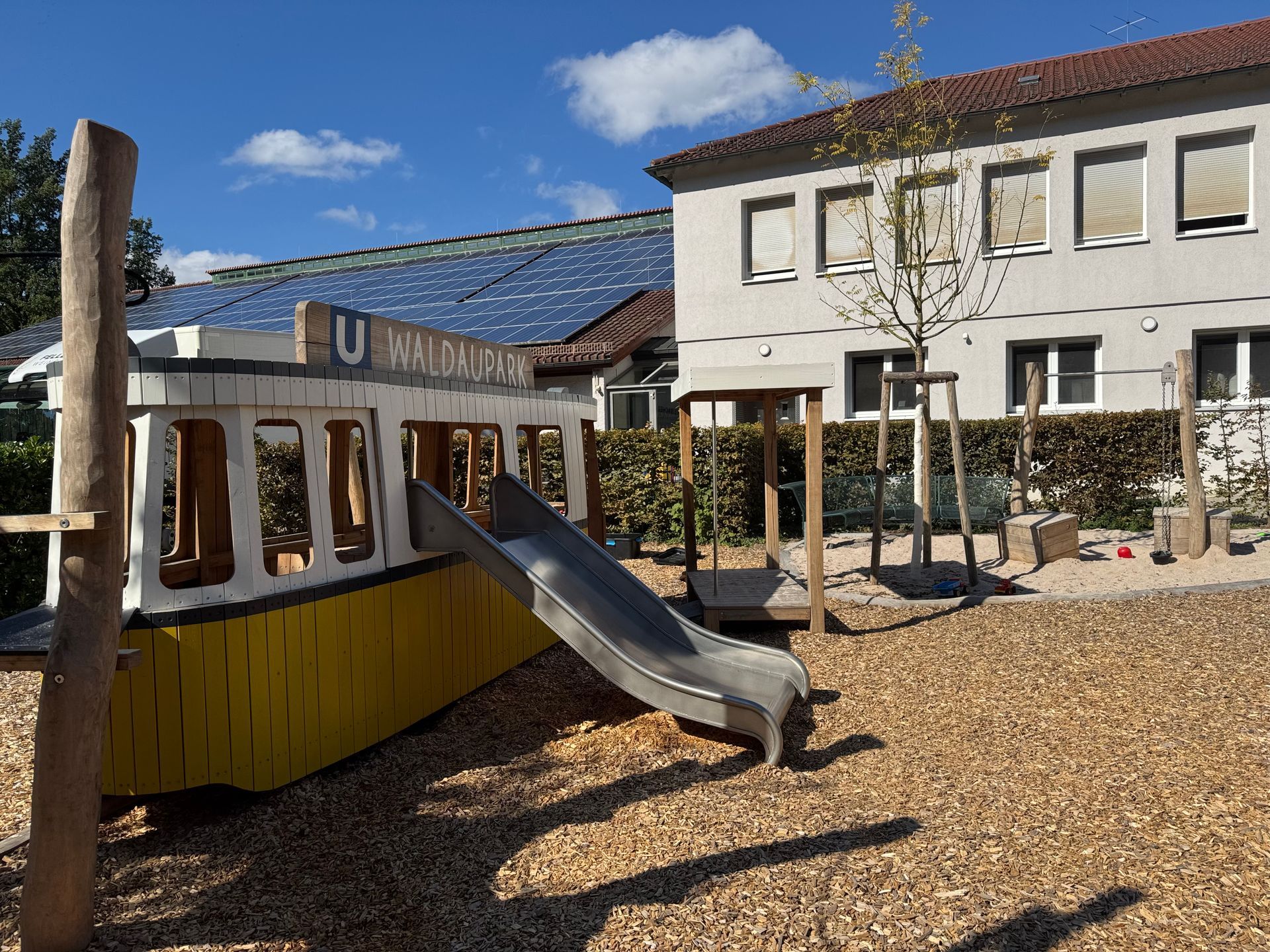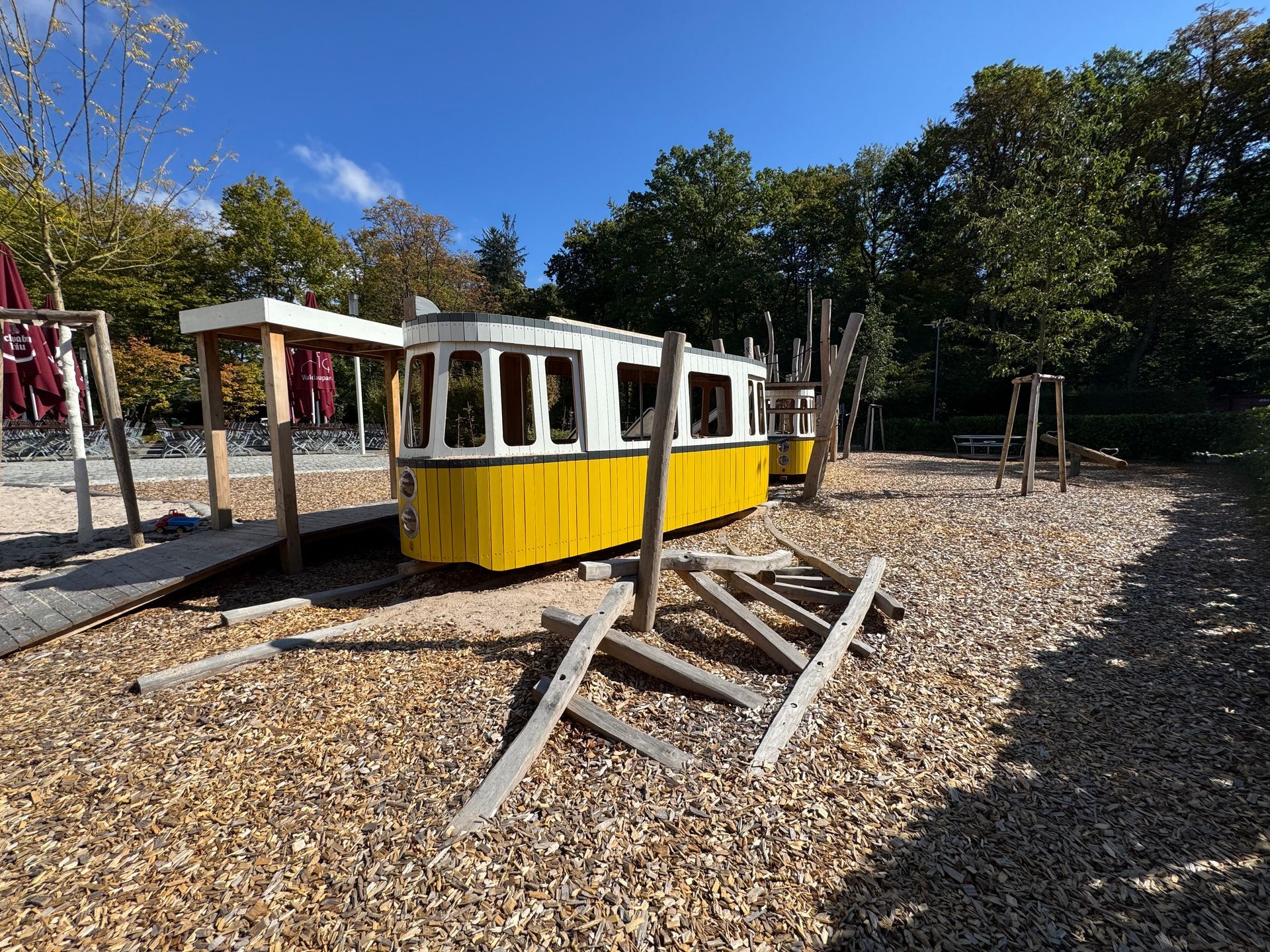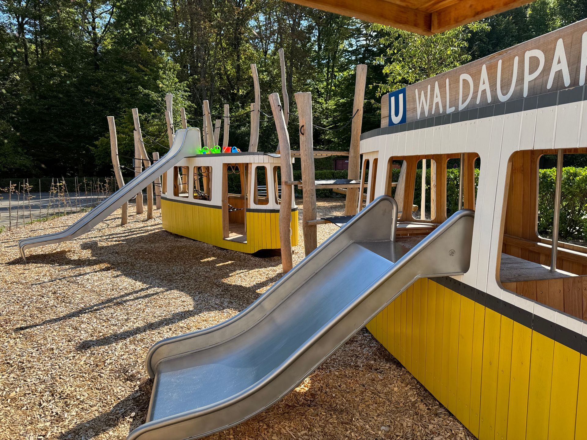 Am SSB-Veranstaltungszentrum im Waldaupark entstand ein thematisch passender Spielplatz rund um das Thema Bahn. Zwei Zugwaggons bilden das zentrale Highlight, sie können bestiegen, erklettert und über Rutschen wieder verlassen werden. Am Ende der Waggons wartet ein Kletterbereich, während ein separater Sandspielbereich auch den Kleinsten Platz zum Spielen bietet. So entsteht ein vielseitiger Ort für Kinder aller Altersgruppen.